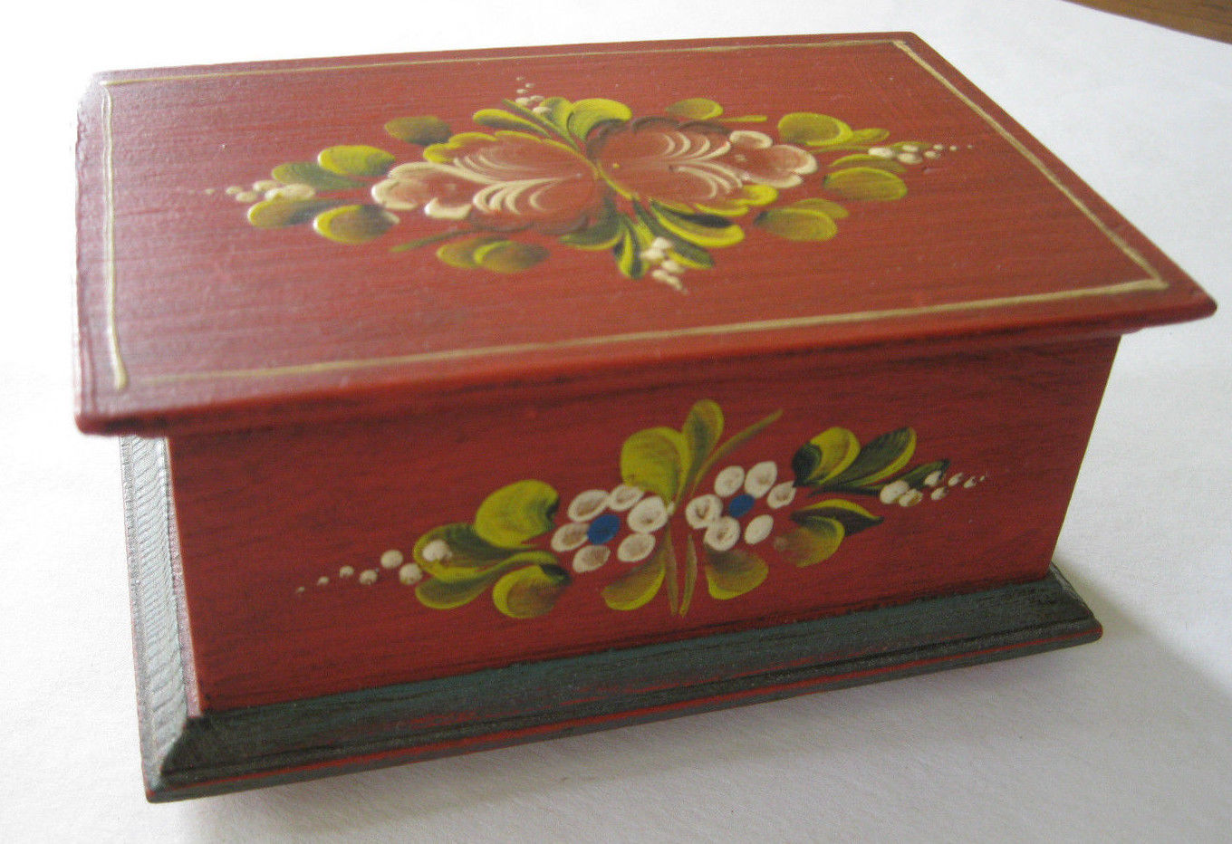 rosmaling box with attached lid - vintage Norway