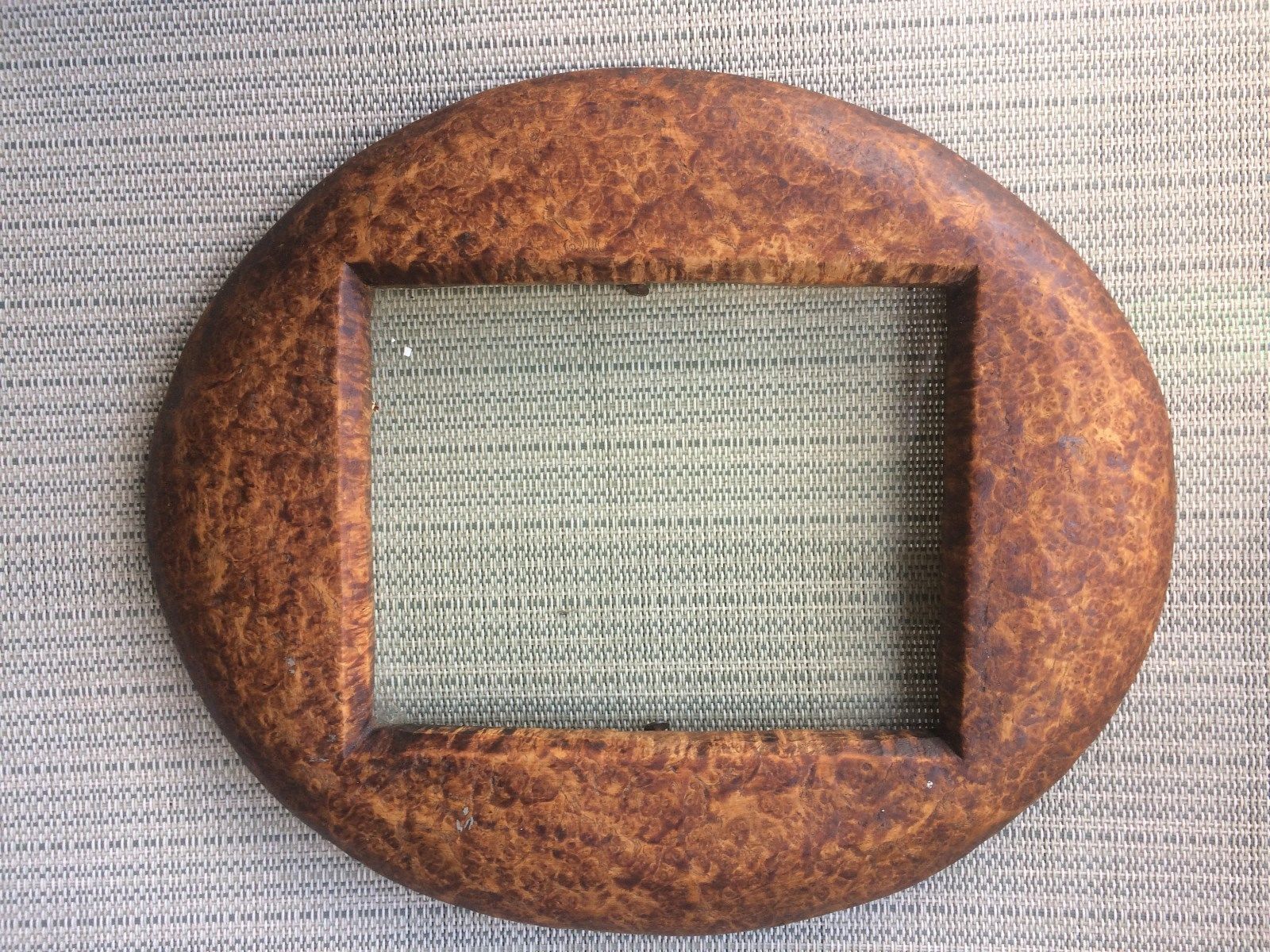 Title (ebay affiliate link): Antique Primitive Oval burl picture frame hand made 8x9 Holds 4.5 x 5.5 photo