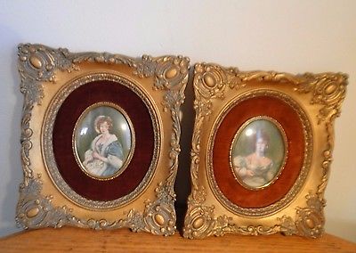 Title (ebay affiliate link): Pair Vintage Cameo Creation Ornate Frame Oval Convex Glass Lady Plaque Portrait