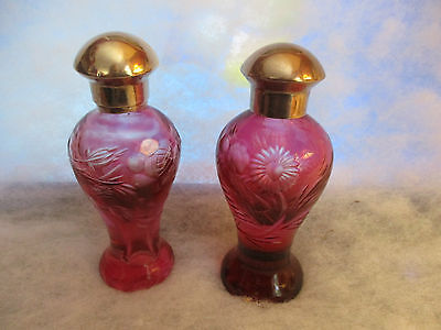 PAIR OF CRANBERRY GLASS SCENT BOUDOIR BOTTLES