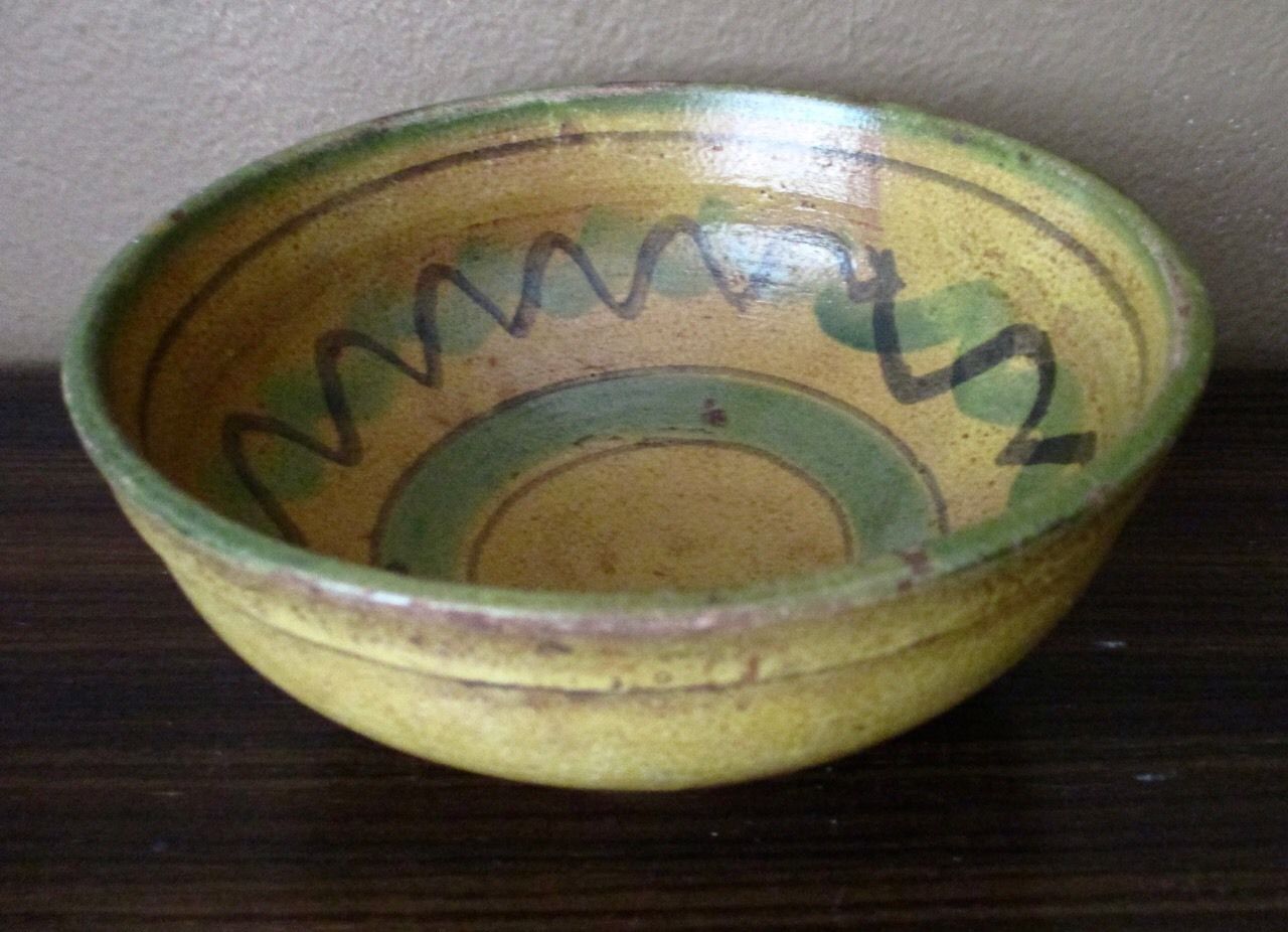 Antique Redware Slip Glaze NC or Pennsylvania Pottery Bowl Slipware