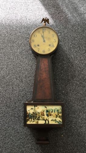 Title (ebay affiliate link): ANTIQUE GILBERT 1807 WOODEN GEORGE WASHINGTON BANJO CLOCK EAGLE TOPPER