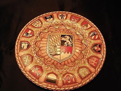 VTG Signed German carved wood 16 Coat of Arms Crest BAYERN pyrography plaque