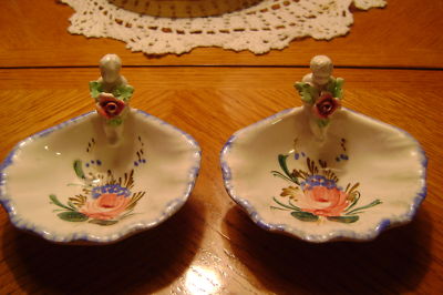 PAIR OF SMALL CAPODIMONTE CHERUB SOAP / CANDY DISHES