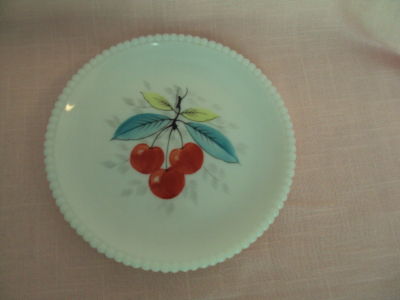 2 Westmoreland Milk Glass Hand Painted Fruit Plates
