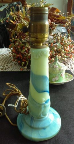 Title (ebay affiliate link): ART DECO VIDRIO BLUE SLAG AKRO AGATE LAMP BASE WITH DANCING LADIES ON BASE RARE!