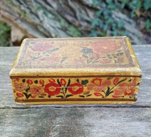 Vintage Wooden Stamp Box Hand Painted floral 3 section