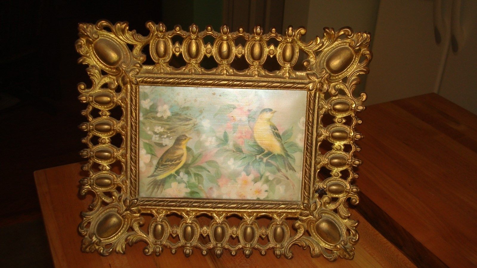 Title (ebay affiliate link): ANTIQUE VICTORIAN CAST METAL GOLD ORNATE PICTURE FRAME FOOTED BACK 9.5 X 8