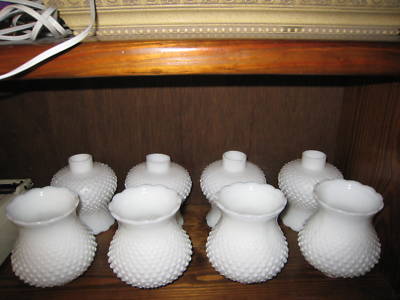 8 VINTAGE SMALL WHITE MILK GLASS HOBNAIL LAMP SHADES