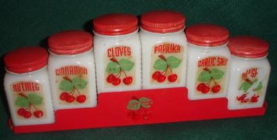 50sKitch Red/White Milk Glass Decoware Cherry Spice Set