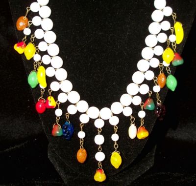 DRAMATIC CZECH FRUIT SALAD & MILK GLASS BIB NECKLACE