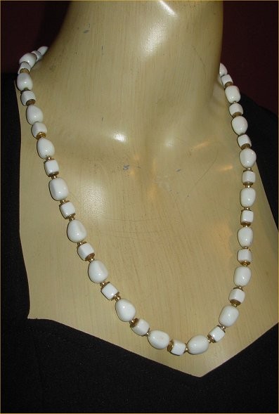 White Milk Glass Gold Spacers BEADS NECKLACE Vintage