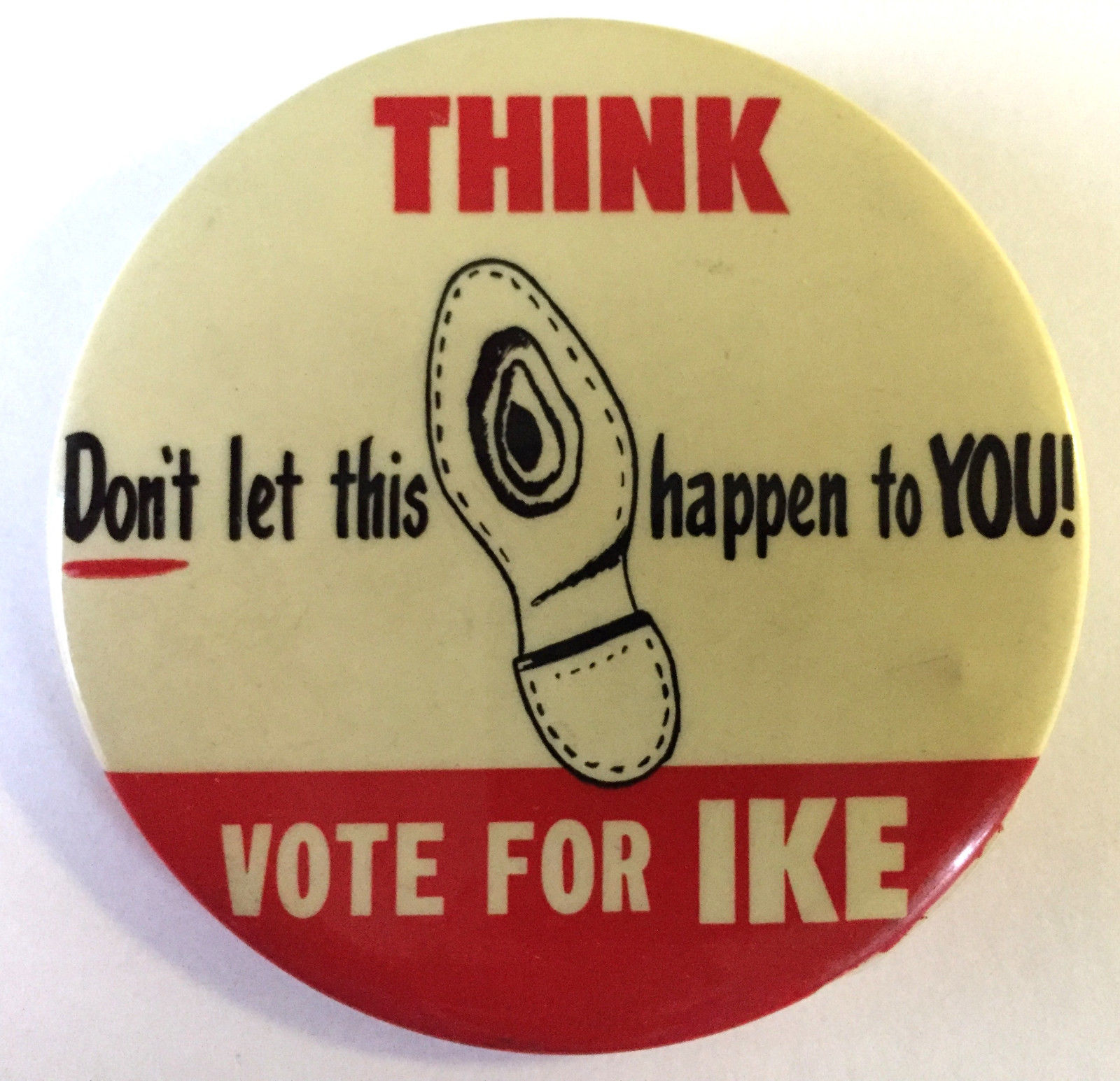 Title (ebay affiliate link): 1956 PRESIDENT EISENHOWER/STEVENSON HOLE IN SHOE POLITICAL CAMPAIGN BUTTON PIN !