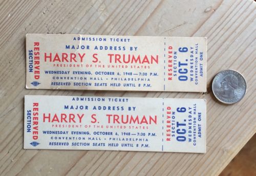 Title (ebay affiliate link): Truman Campaign Speech Passes/tickets Philadelphia October 1948