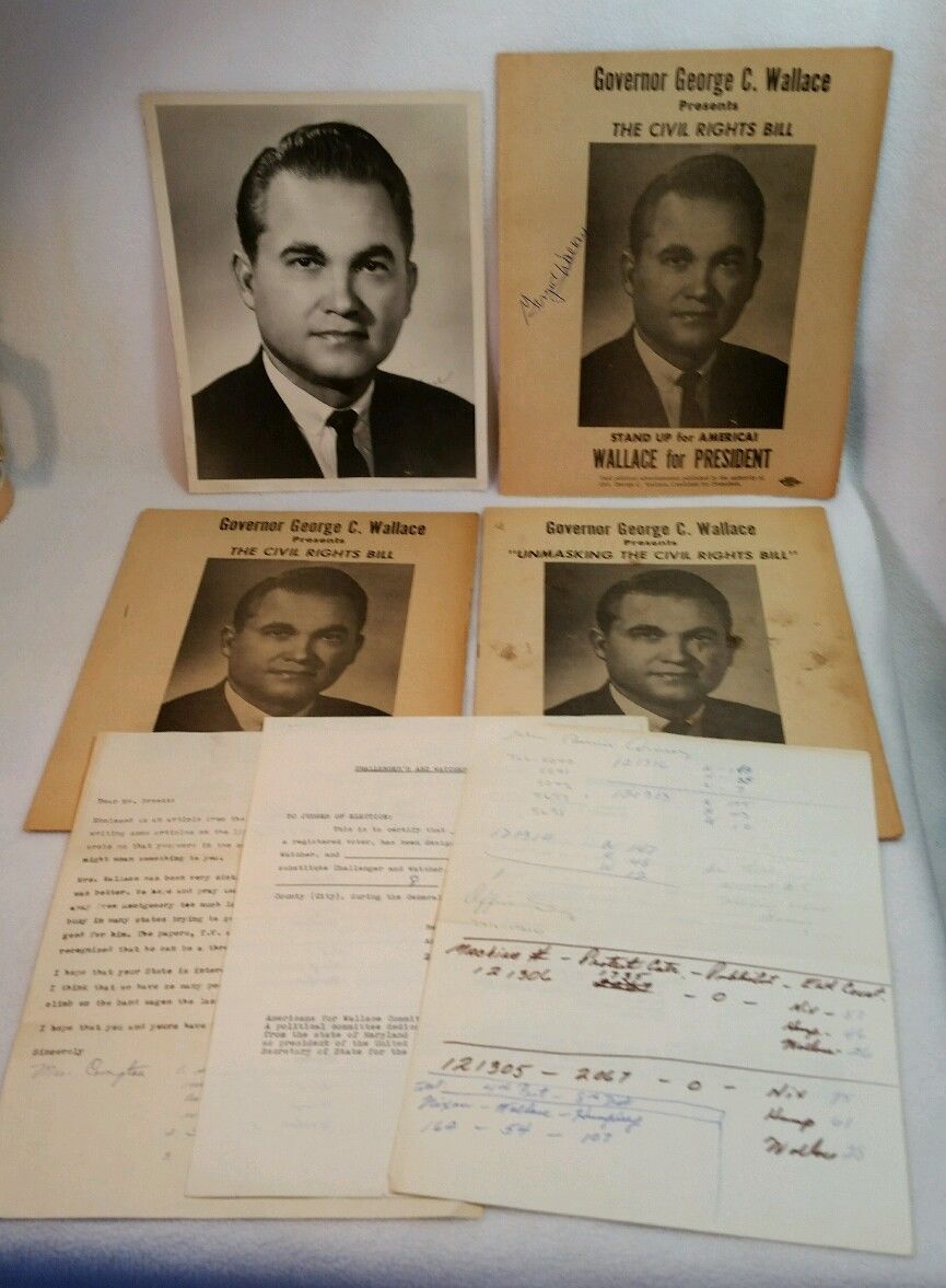 Title (ebay affiliate link): 1960s GEORGE WALLACE FOR PRESIDENT BROCHURES VOTE TABULATIONS SIGNED 8x10 PHOTO+