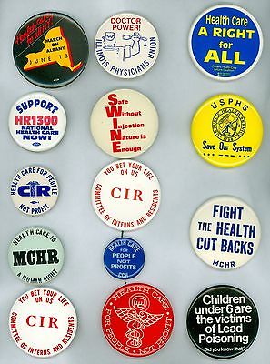 Title (ebay affiliate link): 14 Vintage 1980s Health Care Pinback Buttons HR 1300 National Health Care Now