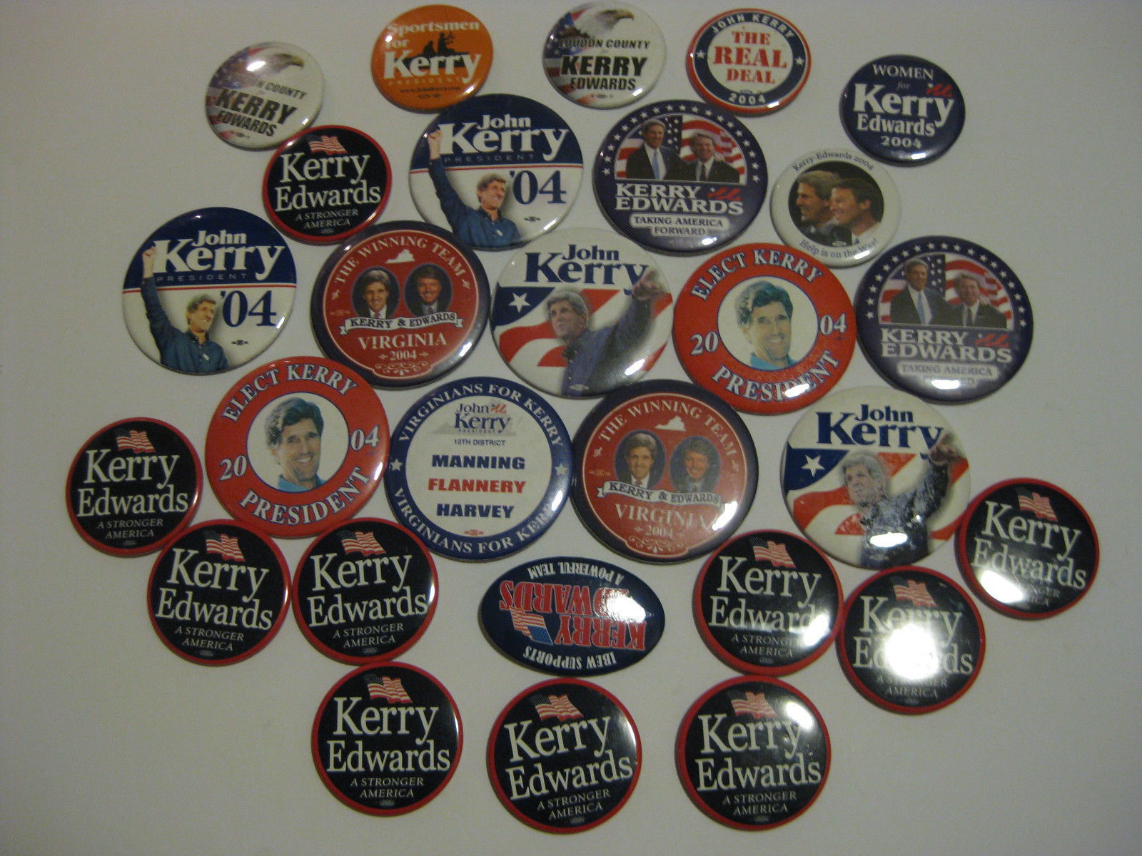 Title (ebay affiliate link): 2004 Political Buttons John Kerry LOT 28 Kerry-Edwards Sportsman, Loudoun Cty VA