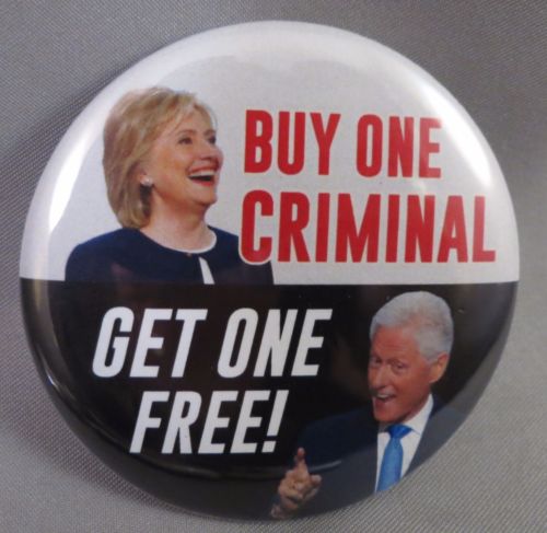 Title (ebay affiliate link): LOT OF 22 ANTI HILLARY CLINTON BUY ONE CRIMINAL GET 1 FREE BUTTONS TRUMP BILL