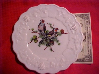 Old Westmoreland Milk Glass Paneled Grape Dish w/Birds