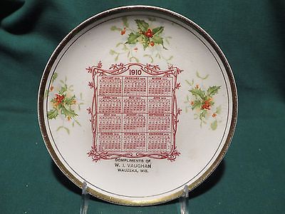 1910 Vintage Christmas Holly Decorated Calendar Plate - Waukesha, Wisconsin