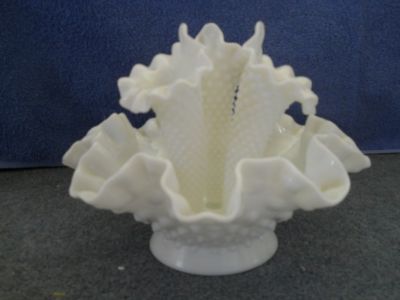 Fenton Milk Glass Hobnail 3 Horn Epergne
