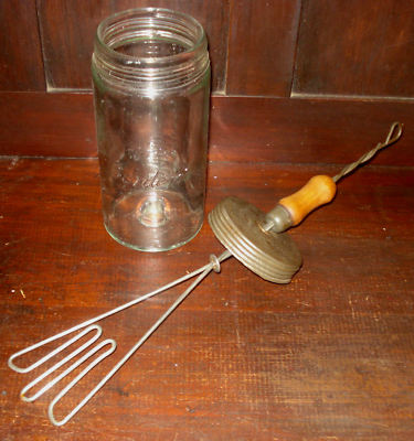 CIRCA 1915 BORDEN'S MILK EGG BEATER MIXER W/ GLASS JAR