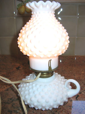 Vintage Fenton Milk Glass Hobnail Lamp Crimped Ruffled