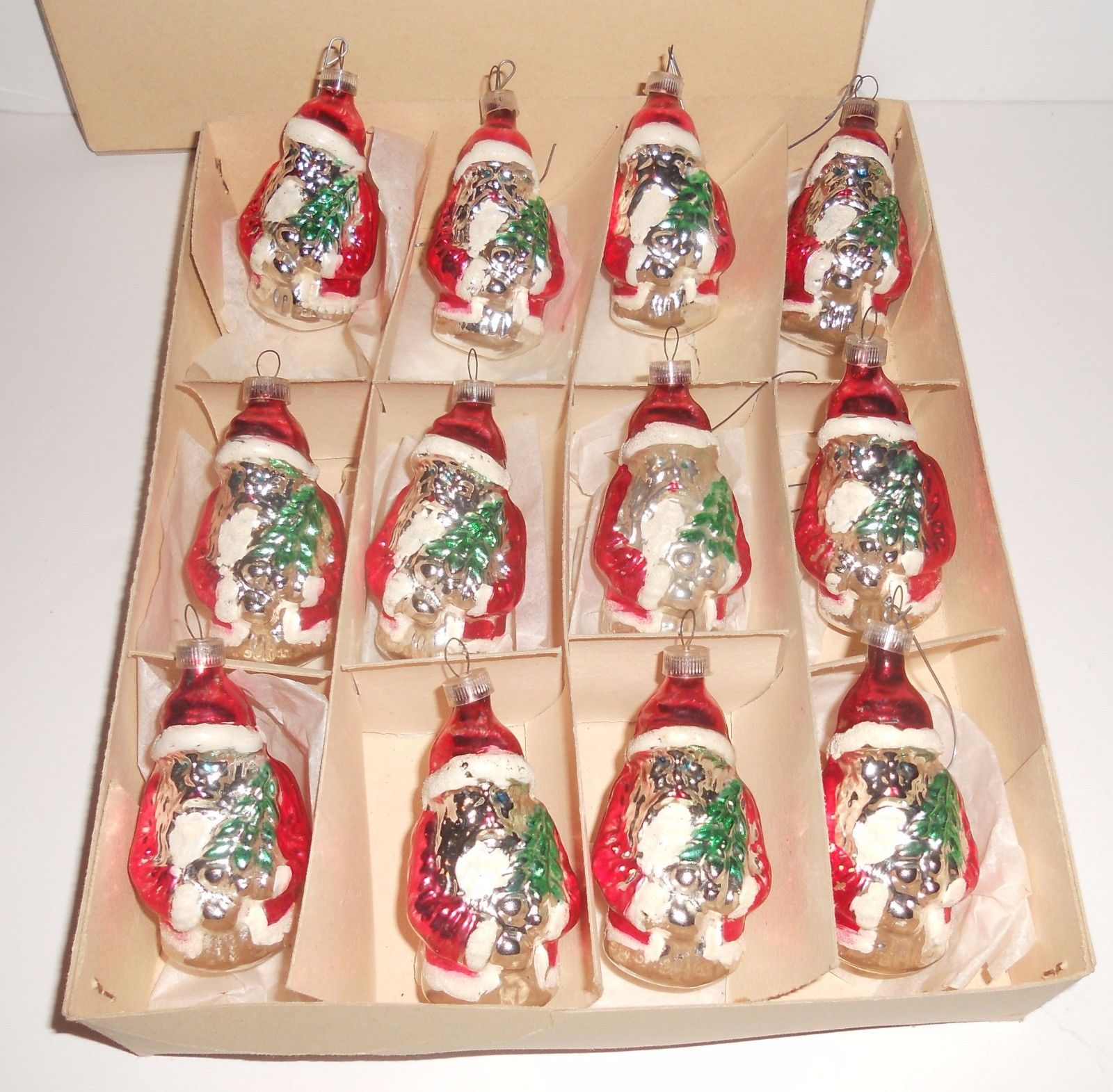 Title (ebay affiliate link): 12 Vintage AUSTRIA Christmas Santa Claus Mercury Glass Xmas Ornaments MIB