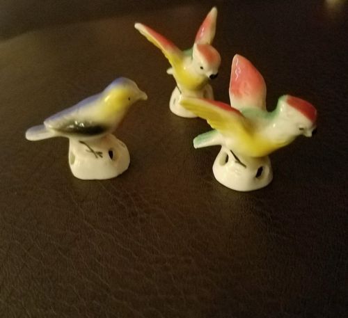 Title (ebay affiliate link): 3 VTG GERMANY BIRDS PORCELAIN TEAPOT DRIP CATCHERS HALF DOLL AND PIN RELATED