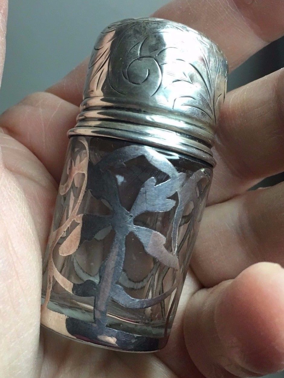 Title (ebay affiliate link): Antique Glass & Sterling Silver Overlay Perfume Bottle Art Nouveau monogram H