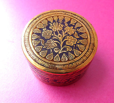 ANTIQUE LOVELY ENGRAVED & BLUE ENAMEL MINIATRE BRASS BOX.