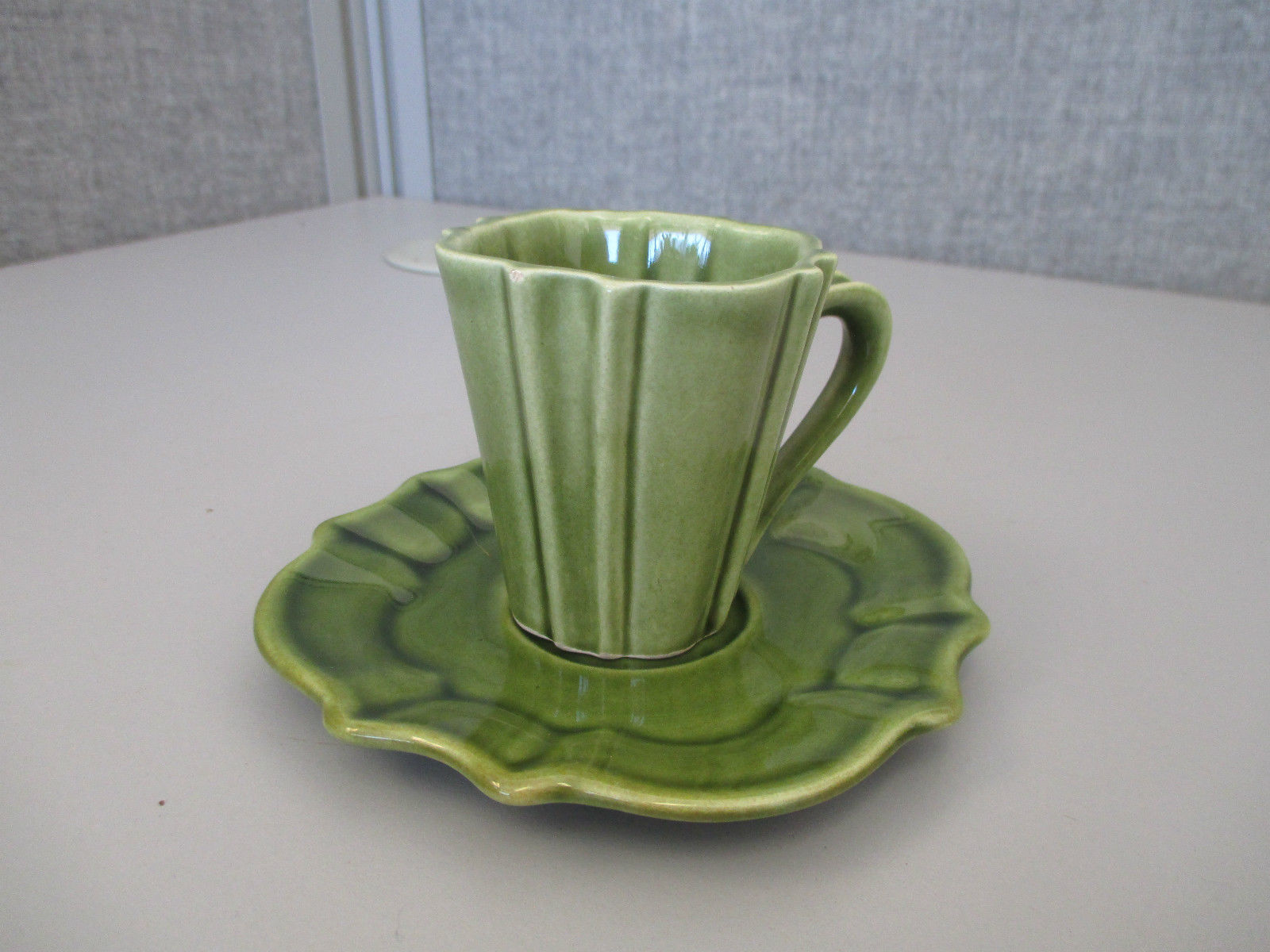 Italian Vintage Petite Green Ceramic Cup & Saucer from Italy.