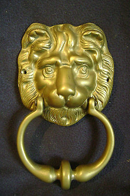 VINTAGE SOLID BRASS LIONS HEAD DOOR KNOCKER