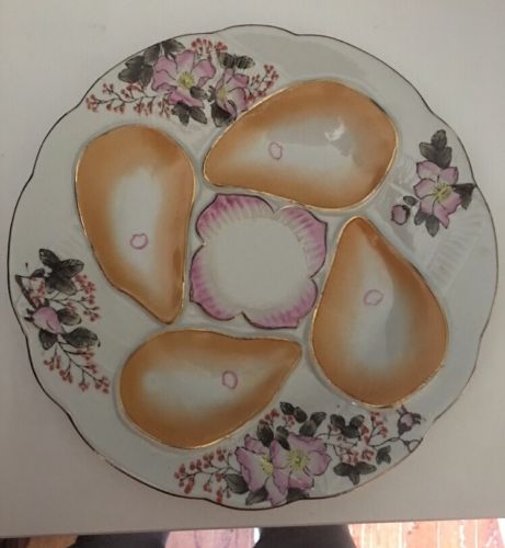 Title (ebay affiliate link): Vtg Nippon Hand Painted 8 1/2" Oyster Plate w/Floral Motif & Gold Trim Set Of 7