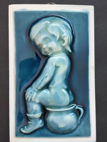 Title (ebay affiliate link): ADORABLE BLUE PORCELAIN CHILD ON A POTTY POT CHILD BATHROOM GLAZED WALL ART TILE