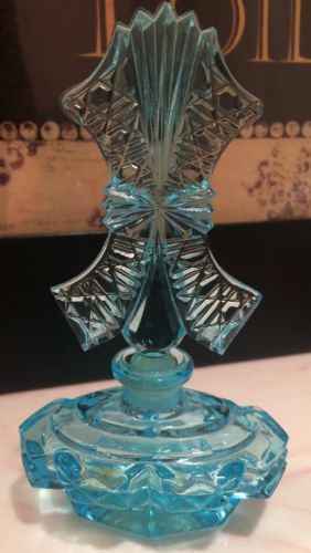 Title (ebay affiliate link): Vintage Turquoise Cut Glass Perfume Bottle With Dabber Dauber Beautiful