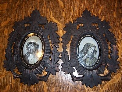Nice Pair of Black Forest Carved Walnut Oval Picture Frames