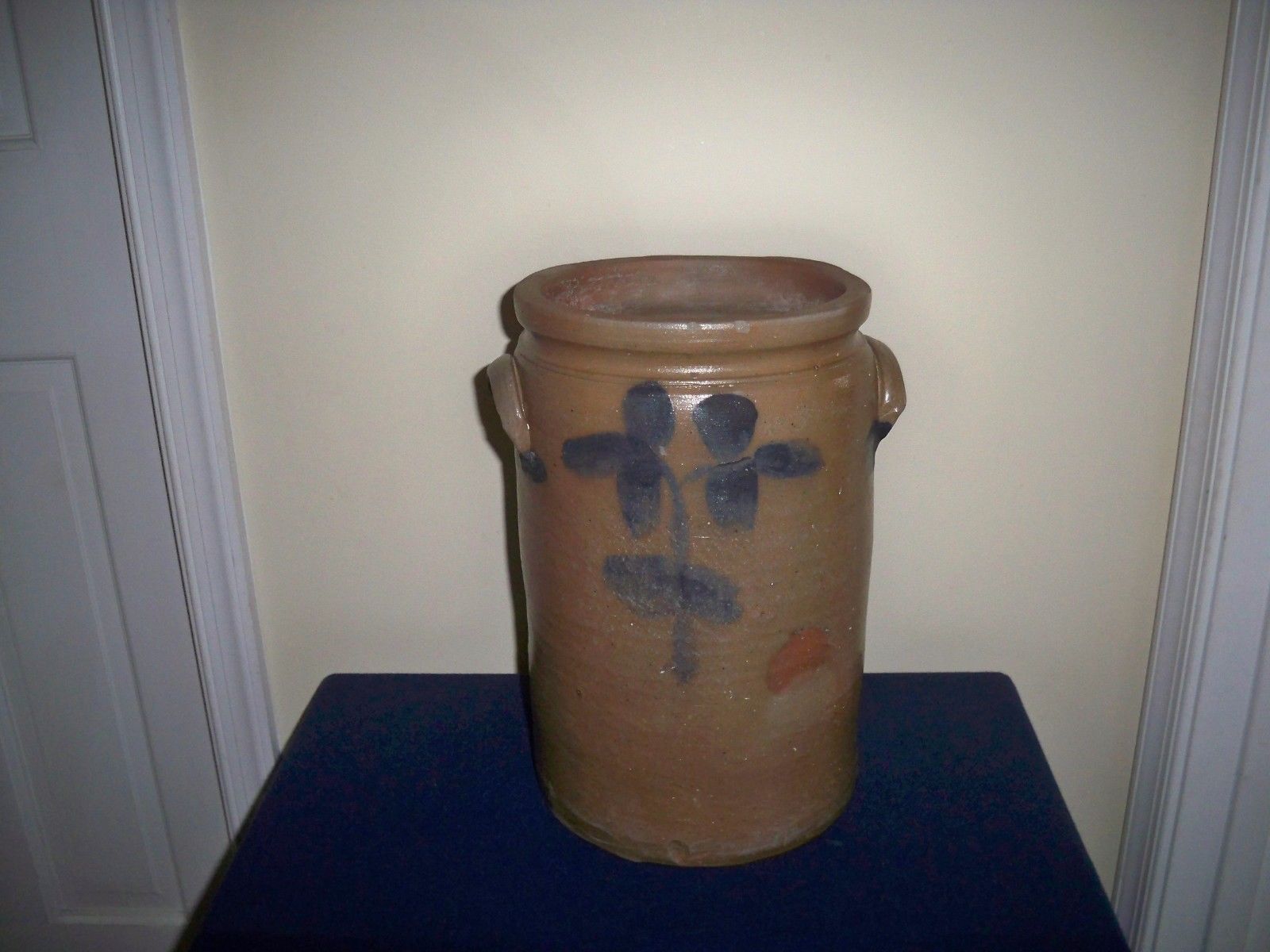 Title (ebay affiliate link): Antique 19th C Stoneware Clover Decorated Peter Herrmann Maryland 3 gal Crock