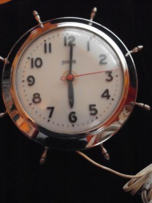 INGRAHAM VINTAGE NAUTICAL WHEEL ELECTRIC WALL CLOCK
