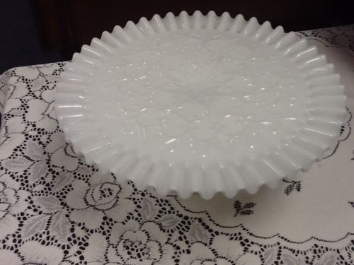 Title (ebay affiliate link): Vintage Fenton Spanish Lace Milk Glass Pedestal Cake Stand Plate