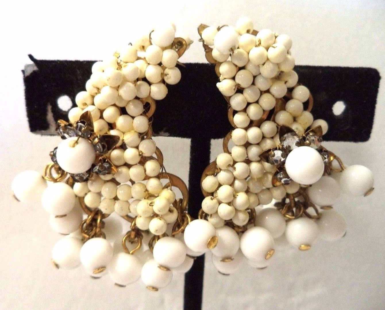 Title (ebay affiliate link): STUNNING VINTAGE ESTATE HIGH END RHINESTONE & MILK GLASS CLIP EARRINGS!!! G8474