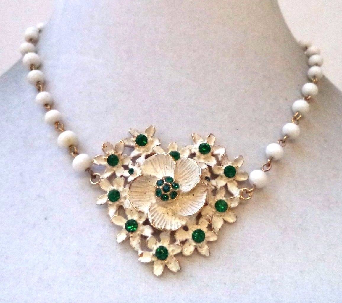Title (ebay affiliate link): STUNNING VINTAGE ESTATE FLOWER MILK GLASS BEADED GOLD TONE NECKLACE!!! 2385D