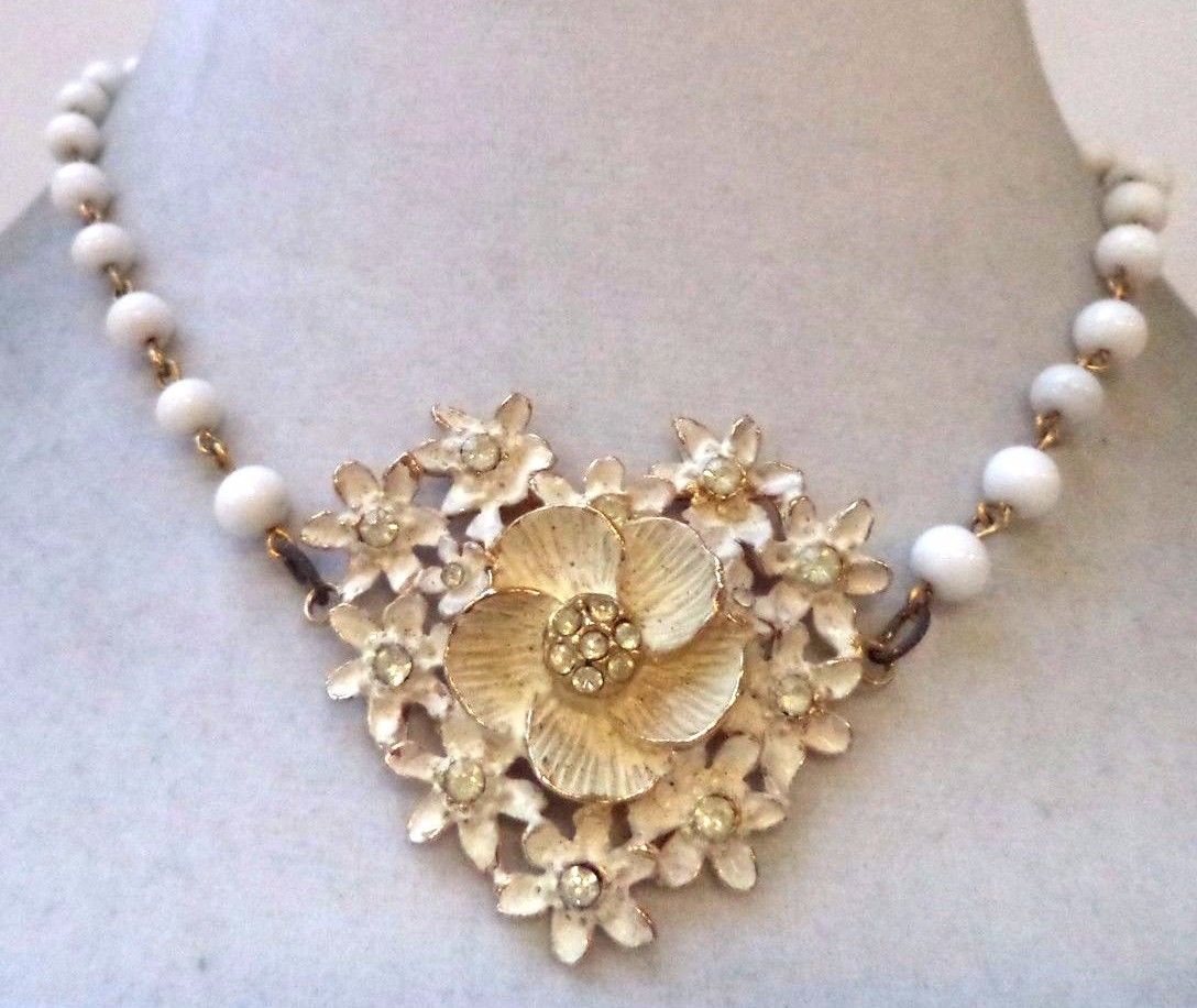 Title (ebay affiliate link): STUNNING VINTAGE ESTATE GOLD TONE MILK GLASS BEADED FLOWER NECKLACE!!! 2385T