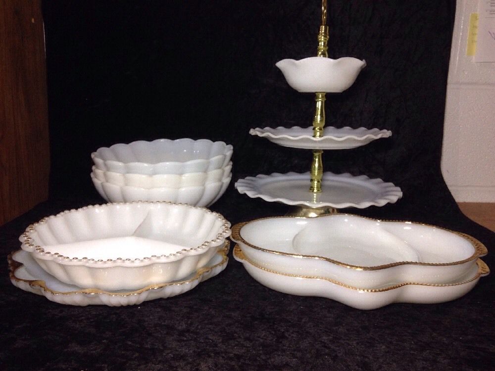 Set Of 8 Assorted Milk Glass Plates And Dishes BOX E