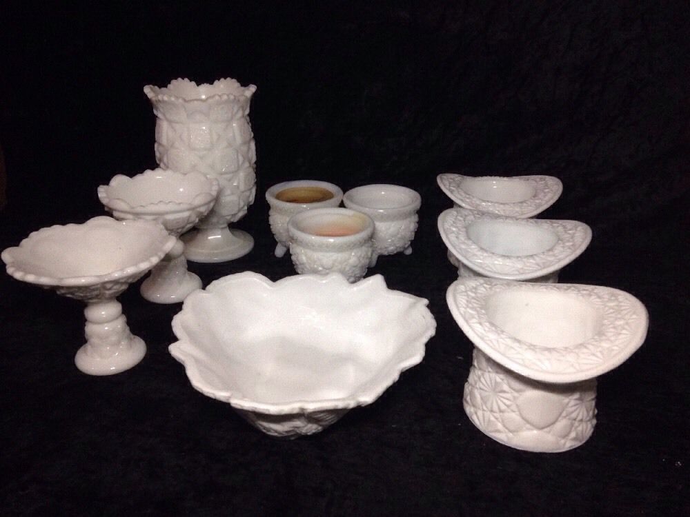 Assorted Set Of 10 Pieces Of Milk Glass BOX I