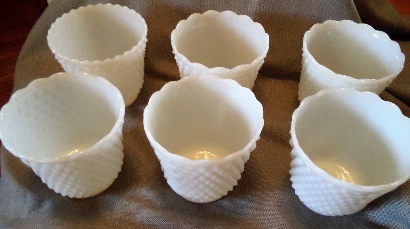 Title (ebay affiliate link): Lot of 6 Vintage White Milk Glass Hobnail Fire King Bowl Vase Planter
