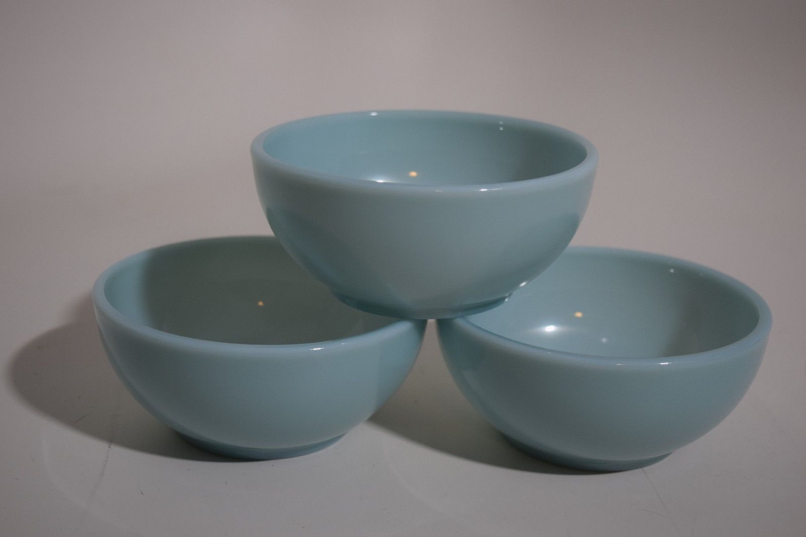 3 Fire King Azurite Delphite Blue 5" Chili Cereal Bowls Blue Milk Glass