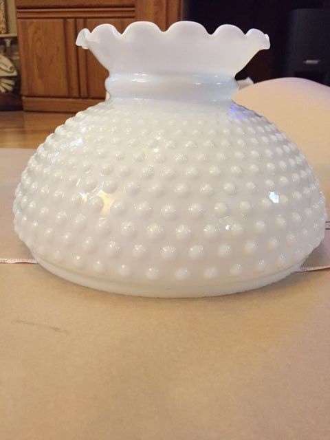 Title (ebay affiliate link): Vintage 9 3/4"" Fitter, HURRICANE LAMP SHADE HOBNAIL WHITE MILK GLASS RUFFLED
