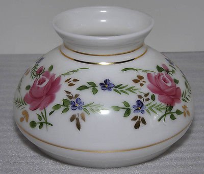 Vintage Milk Glass Hurricane GWTW Hand Painted Roses 7" Lamp Shade