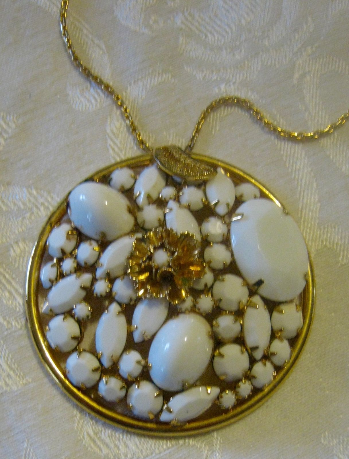 Title (ebay affiliate link): Vintage Alice Caviness necklace/pendant, large pendant with milk glass stones